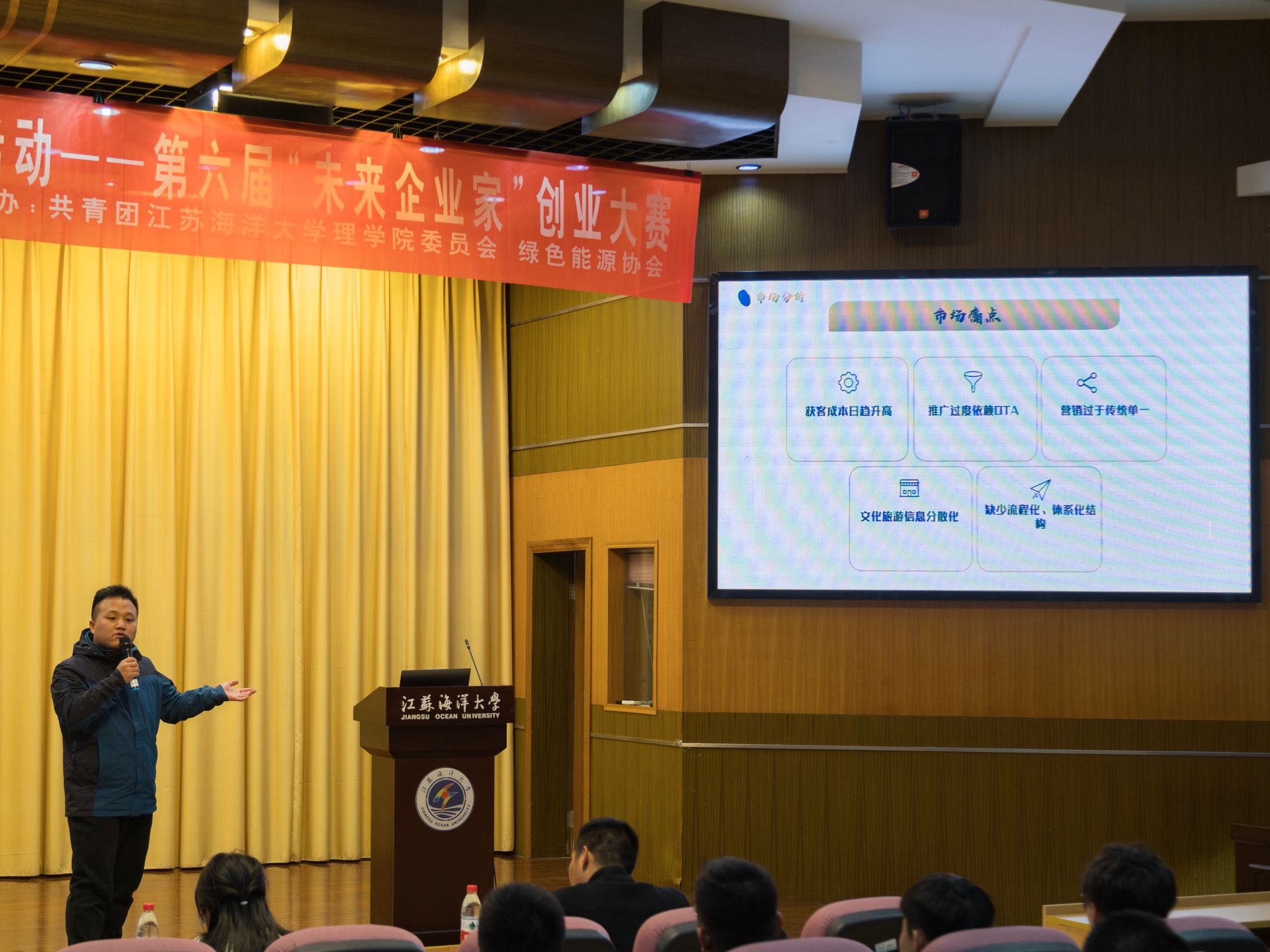 为激励和培养我校大学生自主创业,敢于创新的精神,展示我校学生创新创业水平,11月16日晚,由校团委主办,理学院团委承办的江苏海洋大学第十届大学生科技节系列活动之第六届“未来企业家”创业大赛于文博楼报告厅举行,本次赛事邀请到校团委副书记黄媛老师、环境与化学工程学院苏成兄老师与商学院周智超老师担任评委。