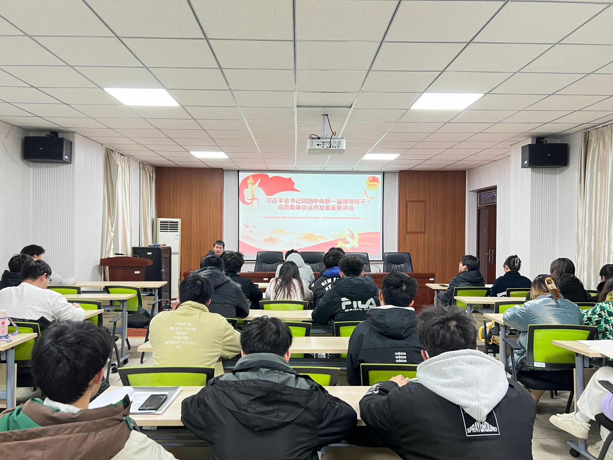 感悟伟大思想,筑牢理想信念。2023年12月4日晚,理学院团委书记刘丰瑞于定海楼512带领青马学员学习习近平总书记同团中央新一届领导班子成员集谈话的重要讲话精神。