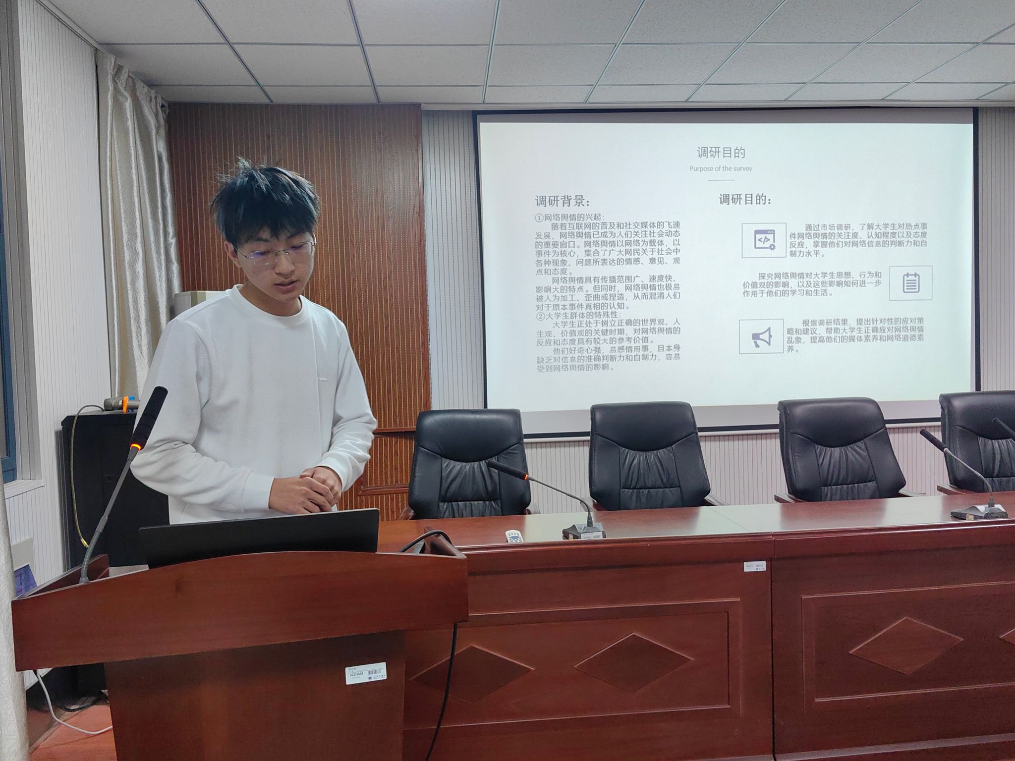 本期青马班学员共分成六组开展了为期一周社会调研。围绕网络道德、就业创业、食品安全等社会热点,各组运用数据分析的专业技能在校内外开展线上线下调研。交流报告会上,各小组代表依次上台汇报调研结果。其中第一小组以大学生网络道德现状为主题,他们提出网络与大学生的生活密不可分,要加强自身修养以及知识储备,通过网络道德教育以及网络舆论立法等方式,共建良好的网络环境。研究食品安全的第四小组期望通过此次调查掌握消费者认知情况,从而促进食品安全环境的良性发展。第五小组以“做文明先行者,践行垃圾分类在行动”为主题进行了调查,透过数据,小组指出虽然垃圾分类概念已经得到传播,但仍需在生活中做好落实。