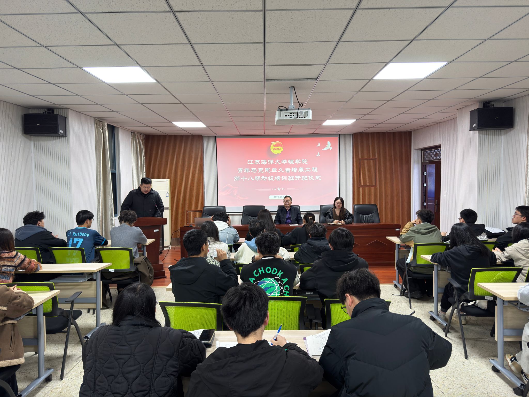 为深入学习贯彻习近平新时代中国特色社会主义思想,坚持用马克思主义中国化最新成果武装团员青年头脑、指导实践,11月12日晚,理学院第十八期青马工程培训班开班仪式在定海楼512举行,党委书记张振松出席并进行授课。学生第二党支部书记张慧婧、入党积极分子及青马班学员参加,开班仪式由团委书记刘丰瑞主持。