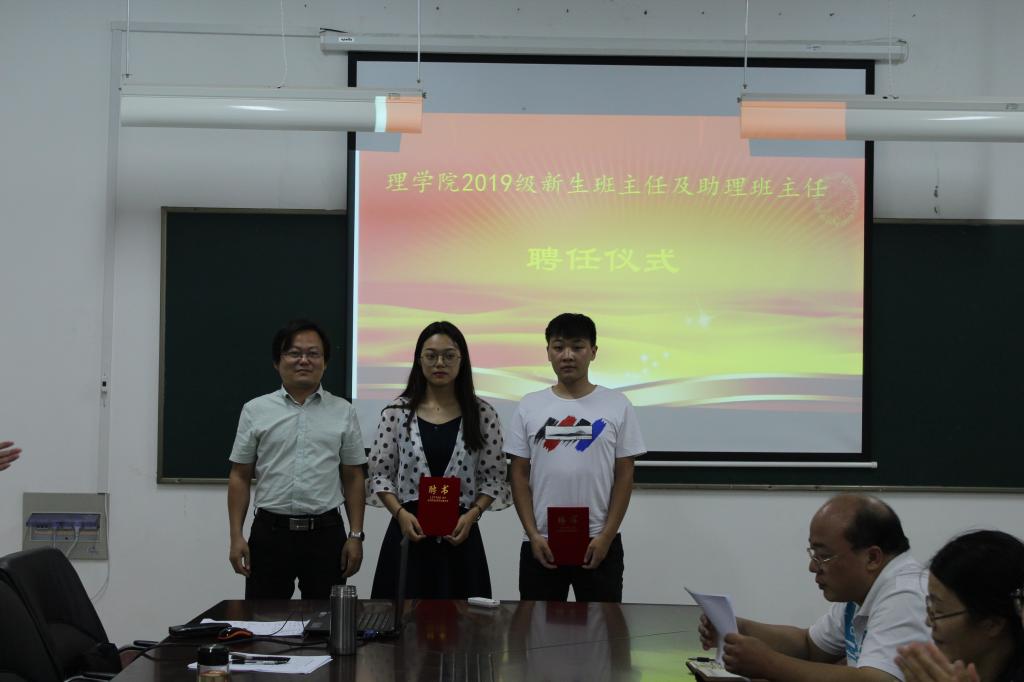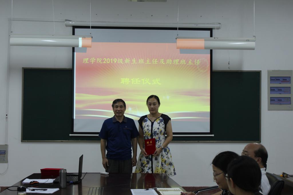 8月28日下午,理学院2019级班主任及助理班主任聘任仪式和培训会议在苍梧校区定海楼516举行。学院党委书记赵季春、副院长史林兴、全体受聘班主任及助理班主任、全体辅导员、部分学生代表参加本次聘任仪式。聘任仪式由党委副书记倪军主持。