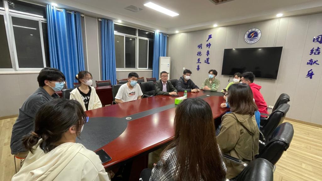 为了深入了解疫情防控期间2021级学生在通灌校区的生活学习情况,4月25日晚七点半,院党委副书记倪军在格物楼二楼办公室召开班委座谈会,全体21级班委参加会议。