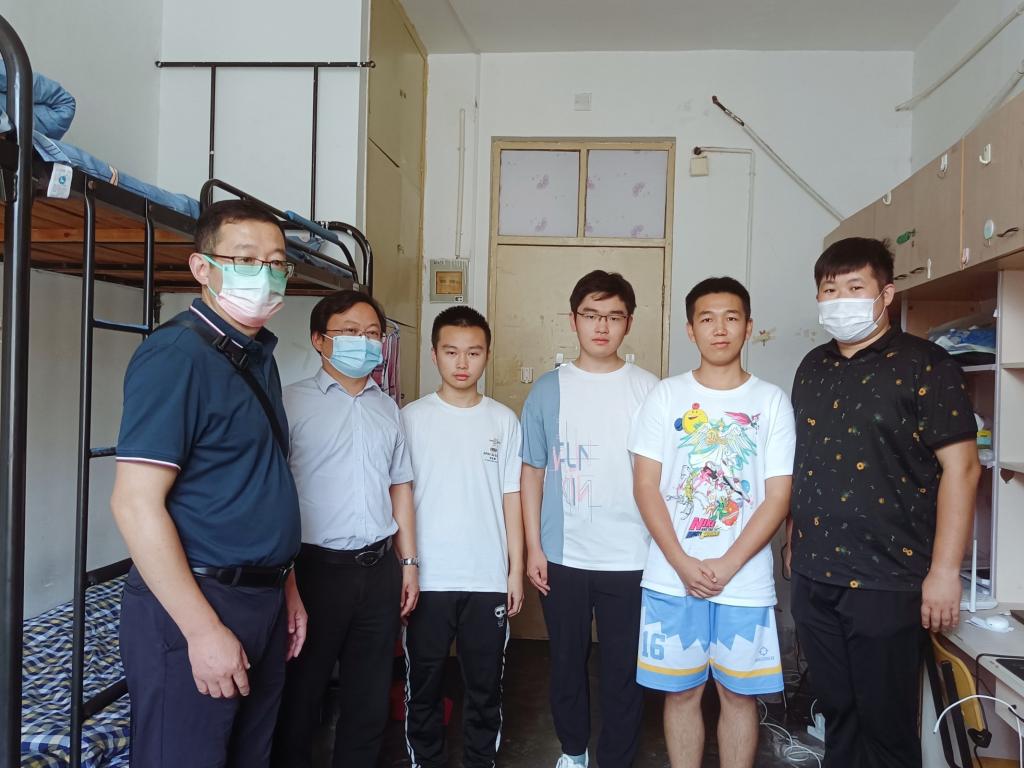 张振松、倪军一行对新生加入理学院这个大家庭表示欢迎,仔细查看新生宿舍配套设施,询问大家返校过程中遇到问题或困难,贯彻学院“送关怀、听心声、解困难、促成长”的宗旨,给家庭条件较拮据的新生送去书包和爱心餐券。走访慰问中,提醒大家自觉配合校园疫情防控工作,尽快完成角色转换,适应新环境、融入新集体。