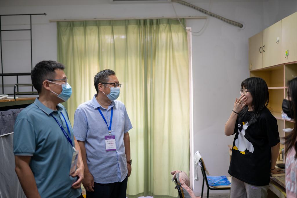 史林兴、黄增光一行勉励同学们在校期间勤奋学习、开阔视野、拓展综合能力、提高个人素质,以昂扬的精神面貌面对未来四年的大学生活,并对同学进行了慰问。同学们热情回应,向老师们问好并致以双节的祝福,纷纷表示一定不辜负学校和家庭的期望,做最好的自己,让老师和家长放心。