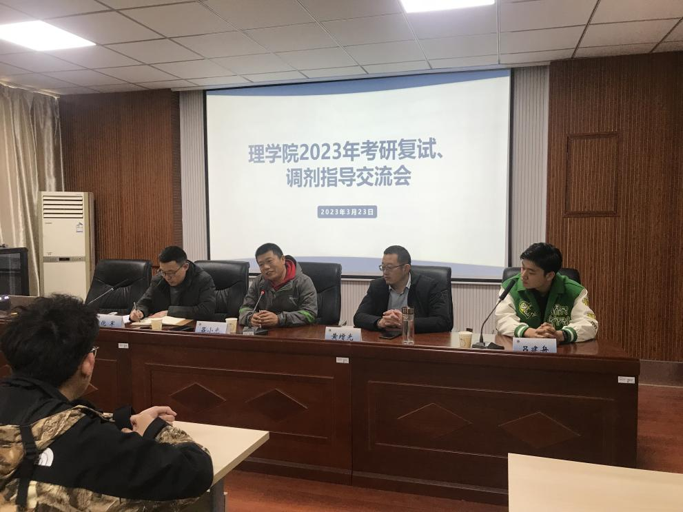 为助力2023届考研同学顺利上岸,对复试过程、调剂节点有更加深入的了解,理学院于3月23日早上9点在定海楼512召开考研复试调剂交流会,邀请理学院黄增光副院长、吕小光教授、2022级研究生吕建舟为考研上线同学作指导,会议由副书记倪军主持。
