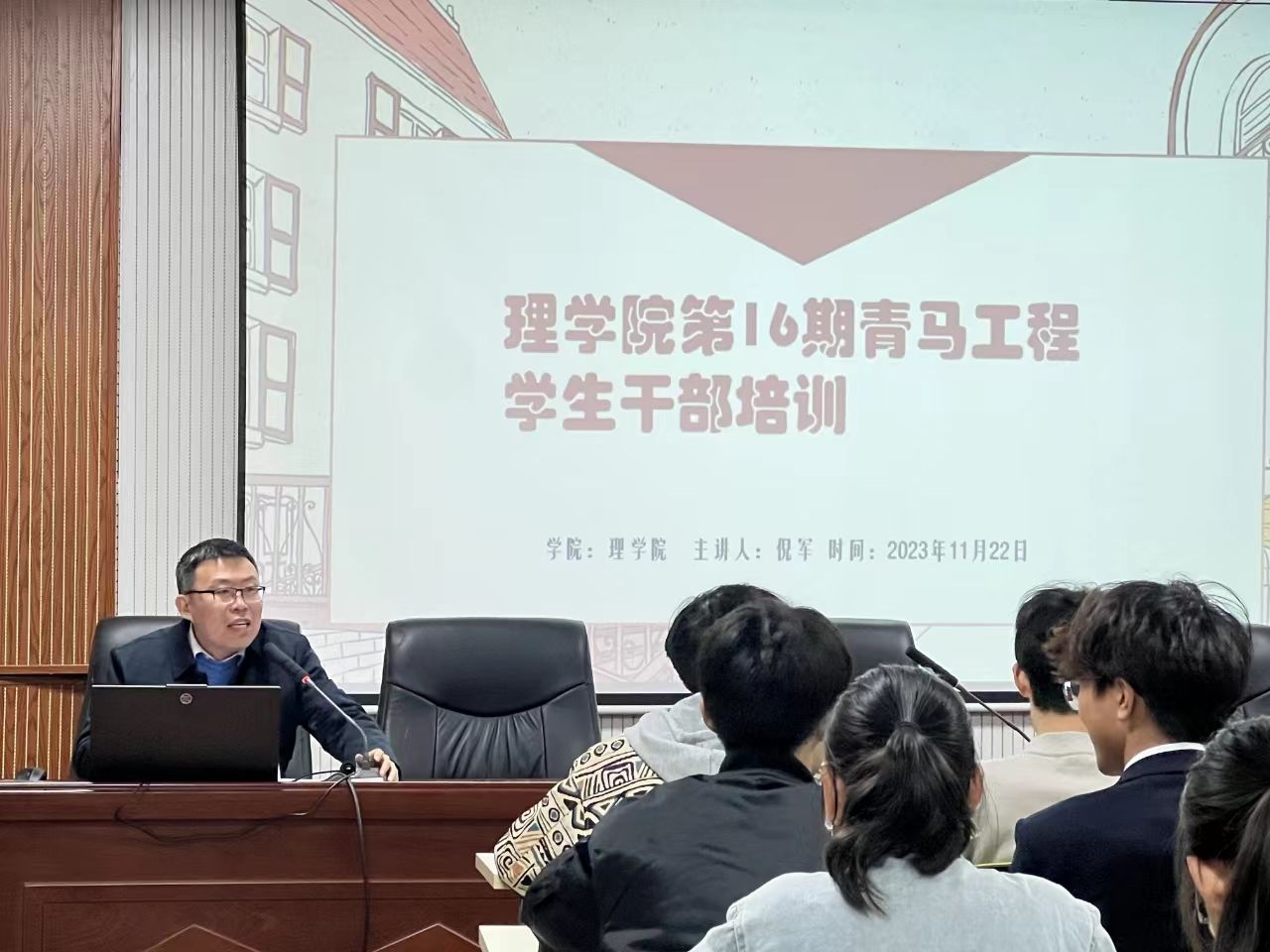 11月22日晚,理学院青马工程第十六期培训班在定海楼512举行开班仪式。为进一步发挥学生干部的模范带头作用,促进团学组织和班集体的建设和发展,理学院党委副书记倪军为学员做“如何做好学生干部”主题讲座。