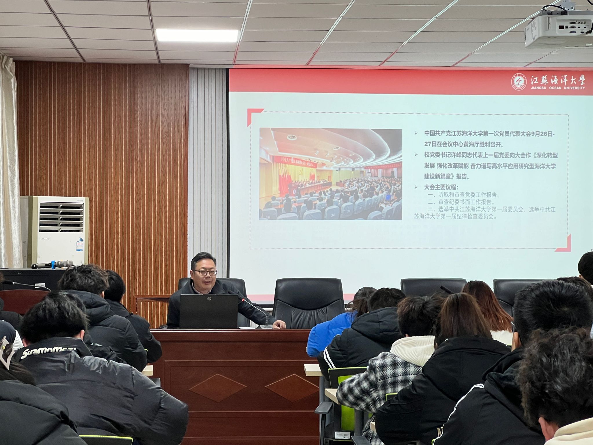 张振松书记带领全体学员集中学习了校党委书记许峰在学校第一次党代会上所作的“深化转型发展强化改革赋能奋力谱写高水平应用研究型海洋大学建设新篇章”工作报告,传达了学校第一次党代会会议精神。张振松书记强调,学习贯彻学校第一次党代会精神要深刻领会、准确把握学校第一次党代会六个方面内容,把党代会提出的新“三步走”战略,“三建一高”总体目标和“十个新”的具体发展目标作为指导实践、推动工作的强大力量;要重点解答好我院学生工作在人才培养、就业创业、志愿服务等工作中面临的主要问题和突出矛盾,明晰今后学生工作的方向、思路、目标、任务和重点。张振松书记要求全体学员要结合当前工作实际,认真学习贯彻学校第一次党代会精神,切实用党代会精神统筹引领工作开展,聚焦聚力“三建一高”总目标,扎实推进学生工作各项任务落地见效。