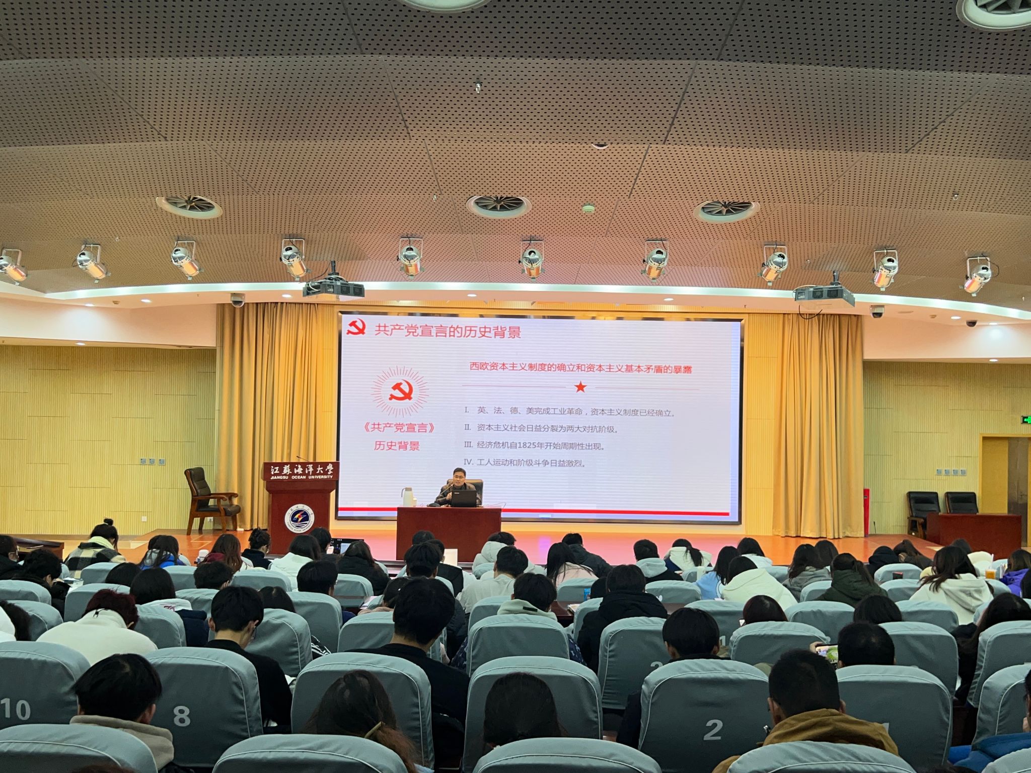 为扎实推进“青年马克思主义者”培养工程深入实施,提升学员对马克思主义深刻理解,引导青年学生坚定中国特色社会主义道路的理想信念。11月29日晚,青马工程培训班邀请马克思主义学院副院长崔家新担任主讲人,在黄海厅为学生干部们开展“读《共产党宣言》,坚定共产主义远大理想”的主题讲座。