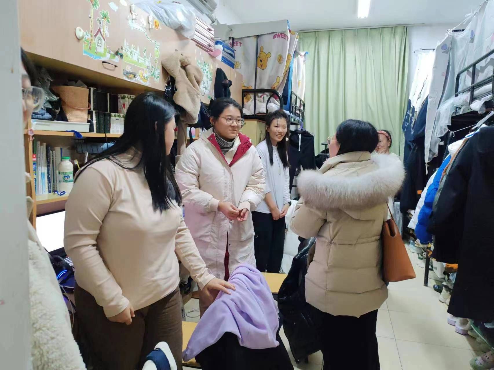 学院各位老师深入学生宿舍,对宿舍进行重点检查,同时提醒同学们一定要把用电安全时刻放在心中,严禁在宿舍内抽烟,舍友之间要互帮互助、和谐相处,创建一个安全、整洁的宿舍环境。