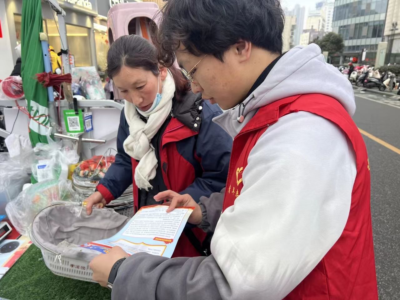 结束敬老院之行,志愿者们来到繁华的商业综合体,向市民发放消防安全知识传单。在此之前,消防员战士们为大学生志愿者们进行了系统的培训,包括最新消防安全条例,防火防灾知识,消防器材用法等,大学生志愿者们在发放宣传单时引导大家认识火灾的风险,提高公众的火灾防范意识,解答他们关于家庭火灾防范、灭火器材的使用等方面的问题,增强了市民的消防安全知识与逃生技能。