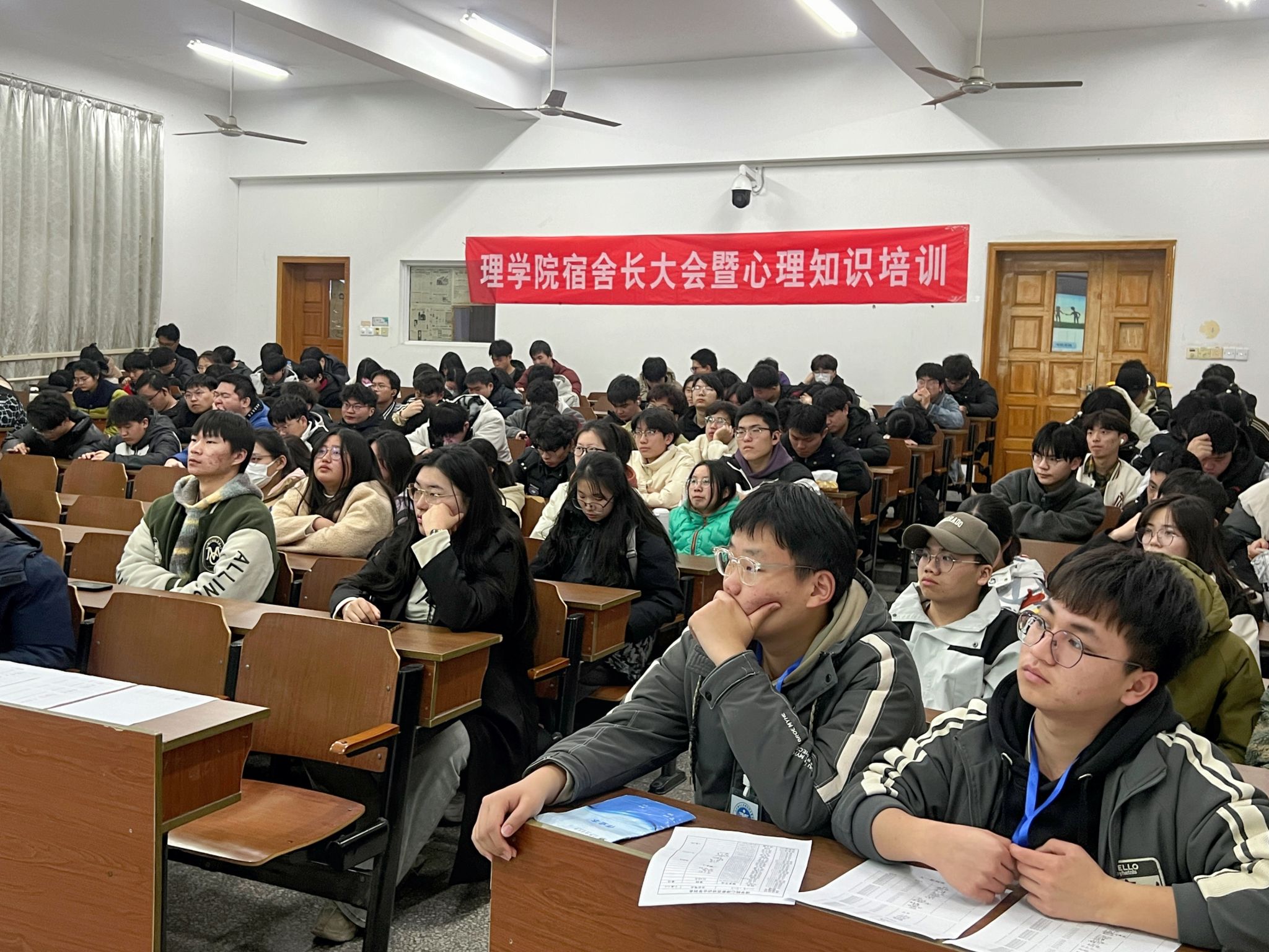 为进一步推动学院安全和心理健康教育工作,3月13日晚,理学院在文通楼举办宿舍长大会暨心理知识培训。本次大会由辅导员张慧婧主持,全体会议宿舍长及心理委员参加。