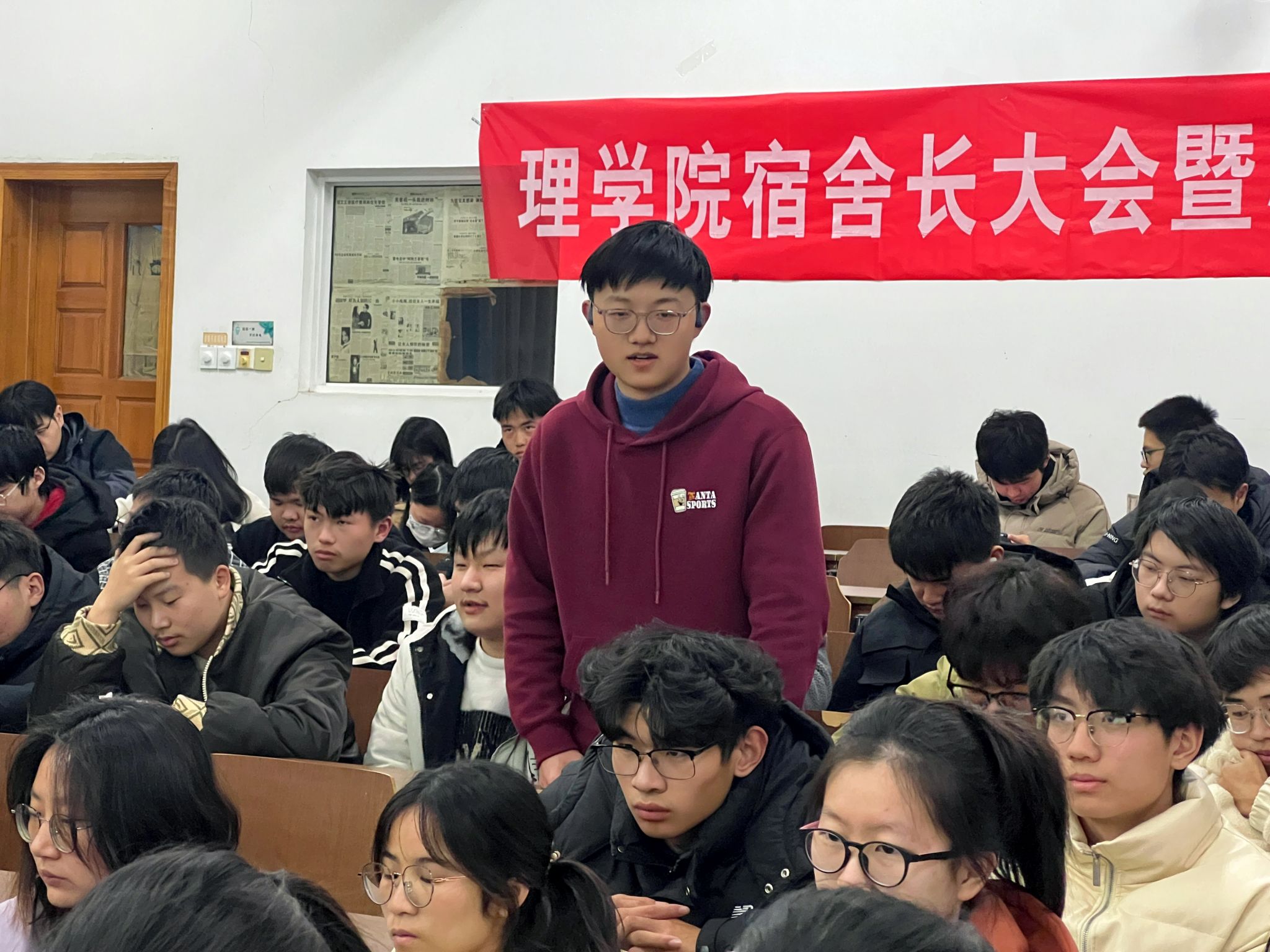 会议首先肯定了全体宿舍长在上学期宿舍管理工作中取得的成绩,同时对本学期的宿舍长工作提出了以下要求:一是积极履责,守好安全底线。排查宿舍的安全隐患,做好安全提醒和防范措施,关注宿舍成员的身心健康,守护宿舍同学的安全。二是做好卫生及美化,营造温馨小家。落实好宿舍值日制度,打造温馨向上的宿舍文化,共同创建良好的宿舍环境。三是带头示范,关心关爱同学。带头遵规守纪,保持良好生活习惯,团结宿舍成员,互帮互助,营造良好的宿舍氛围。