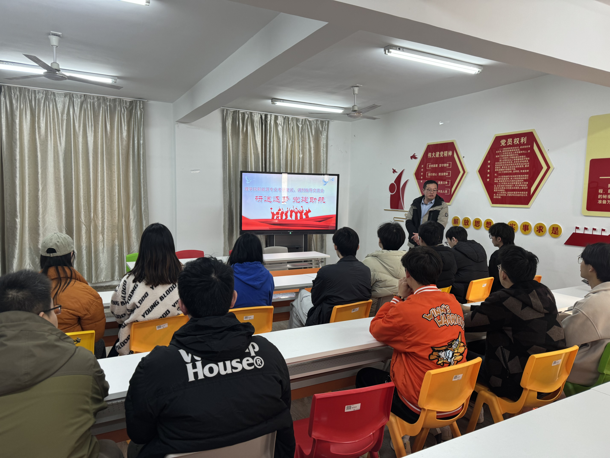 为帮助学院2024届考研学子提振信心,了解复试规则及要求,更好备战考研复试,3月21日,理学院各系教职工党支部在“一站式”学生社区分专业召开2024届考研复试指导交流会,理学院副院长黄增光、副书记倪军、各系主任、支部书记、专业老师、辅导员以及全体2024届考研同学参加了此次指导交流会。