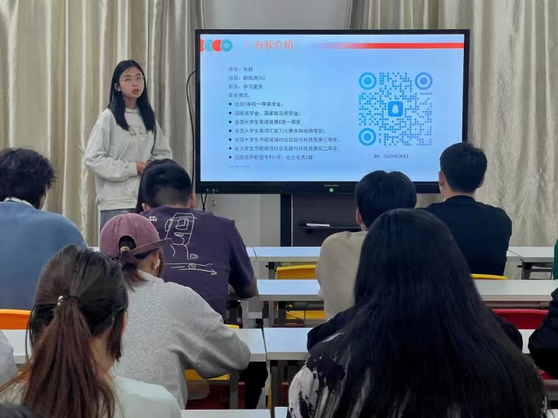 在互动交流环节,两位同学针对学弟学妹们的提问,给出具体建议,鼓励大家积极参与各类学科竞赛,合理安排时间,规划好自己的职业生涯等。