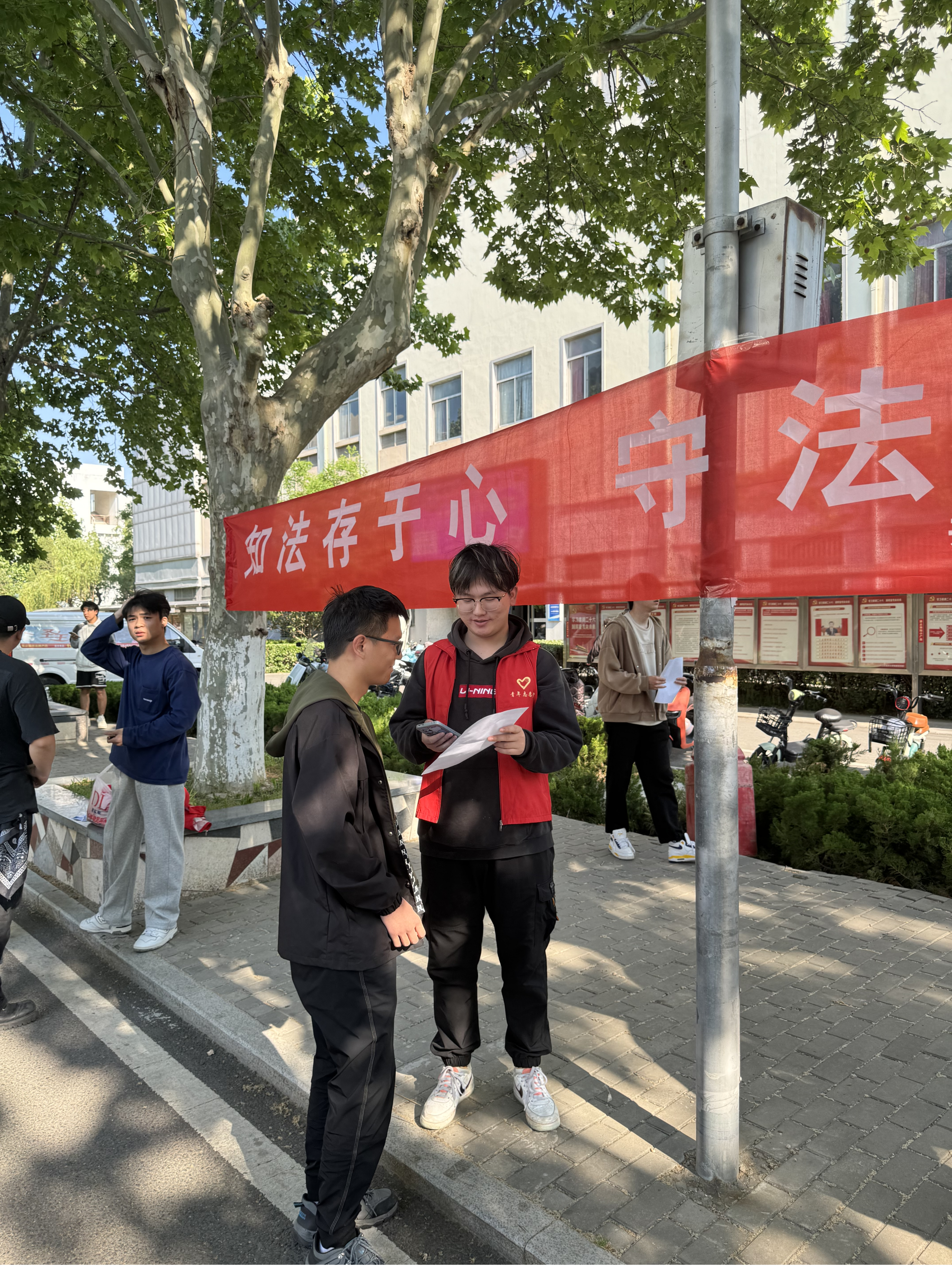 线下活动中,我院志愿者在校园里分发宣传海报,普及法律知识、弘扬法治精神。希望同学们知法存于心,守法律于行,能够更加生动地理解法律条文的含义,感受法律的庄严和权威。