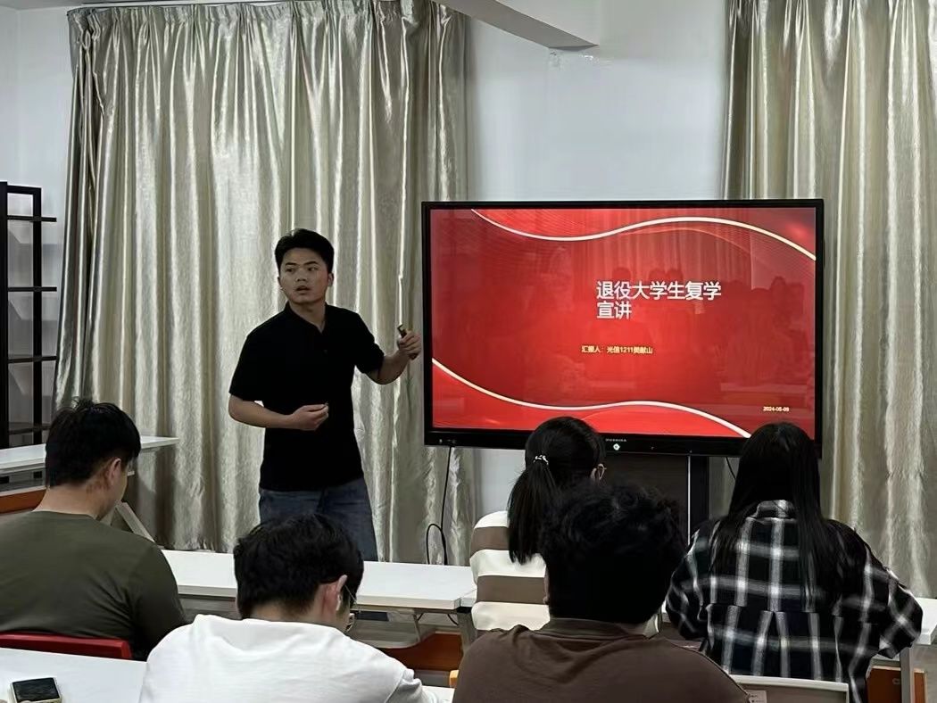为通过退役大学生的亲身经历和感悟,激励在校学生们积极投身军营,同时也为退役大学生们提供一个分享交流、展望未来的平台。5月17日下午,理学院于苍梧校区A7A8一站式社区开展我的青春故事系列宣讲活动,邀请了光信1211班樊献山同学进行宣讲。活动由理学院辅导员张慧婧主持,部分学生代表参加。