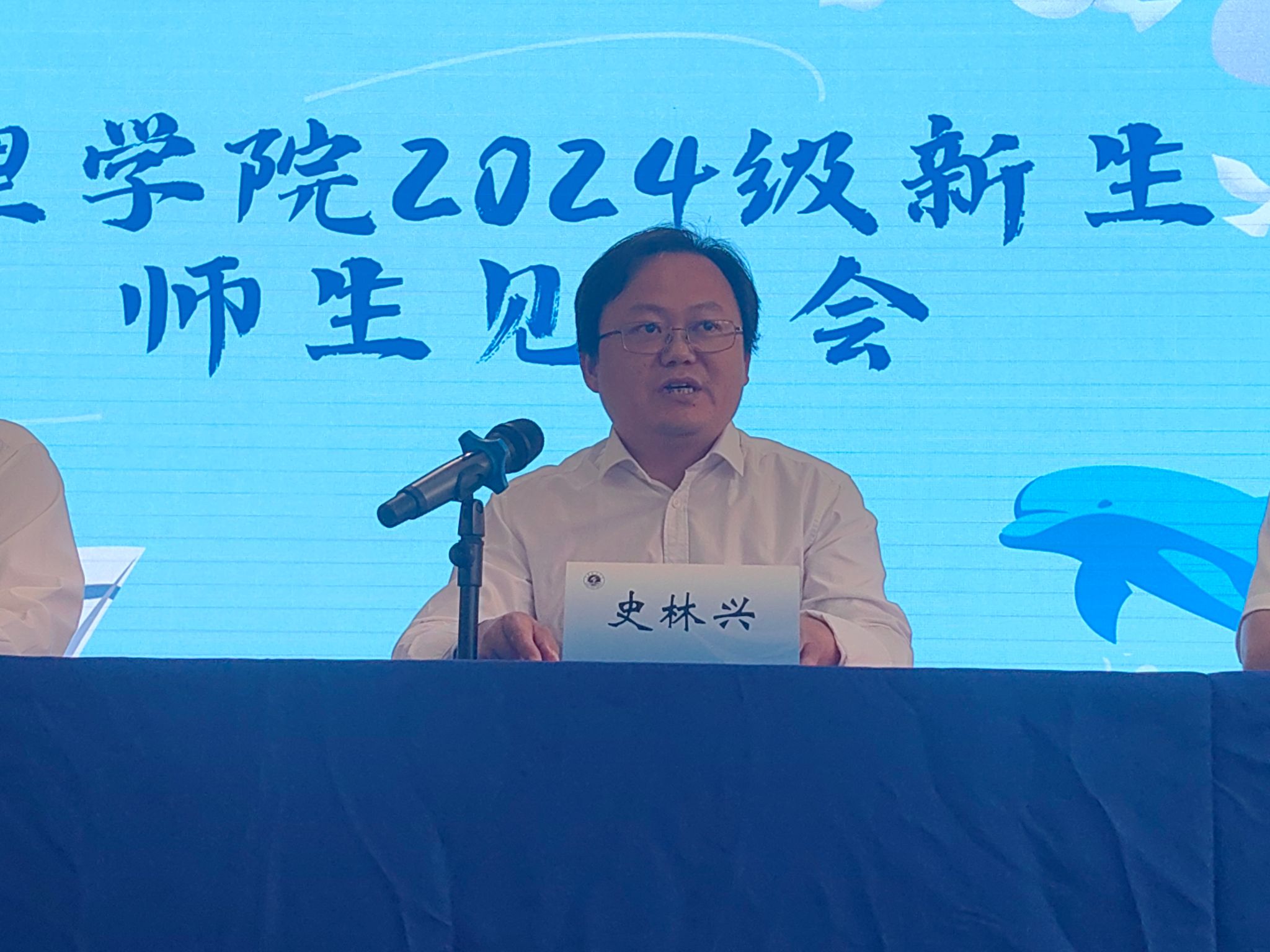 理学院院长史林兴发表讲话,他勉励同学们“善德立身,诚正为本;志存高远,实干有成;博观约取,厚积薄发。”希望大家能够传承理院锐意进取的精神,眺望更远方的风景,追逐更高远的梦想,继续为学院的发展添砖加瓦,让学院的成绩不断赓续。新生班主任代表苏梦雅与新生分享了四点建议:一是凡事预则立,不预则废;二是要学会自主学习;三是要积极参与社会实践;四是要珍惜友谊,关爱他人。老生代表,理学院2023届业生江辉琪通过视频将自己的大学学习生活的经验,包括学习习惯的养成、综合素质的锻炼、学术能力的提升等方面向全体新生做了分享。2024级新生代表韩欣怡进代表新生发言,表达了对加入理学院大家庭的喜悦,对未来的期许。最后,大会在校歌中顺利闭幕。