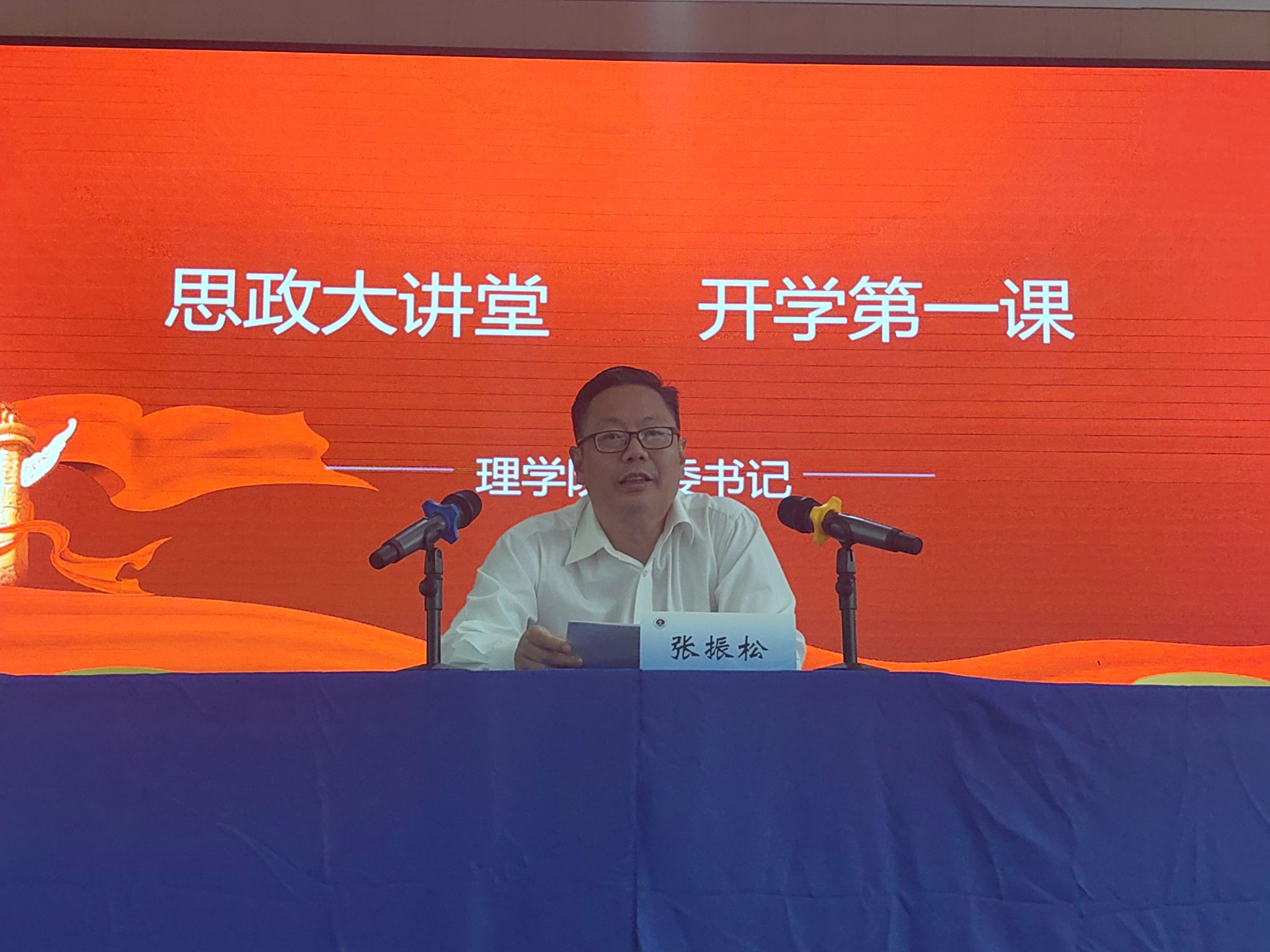 新生见面会结束后,理学院党委书记张振松以“筑梦青春 书写华章”为题为全体新生做开学第一课。张振松表示大学是知识的殿堂,也是成长成才的重要阶段,各位新生同学将接受更加系统、深入的专业教育,培养批判性思维、创新能力和社会责任感。张振松希望同学们树立远大目标,坚定理想信念;勇担时代重任,锻炼过硬本领;积极适应大学生活,培养独立能力;常怀感恩之心,常念感恩之情;不断成长、勇于挑战,追求卓越。