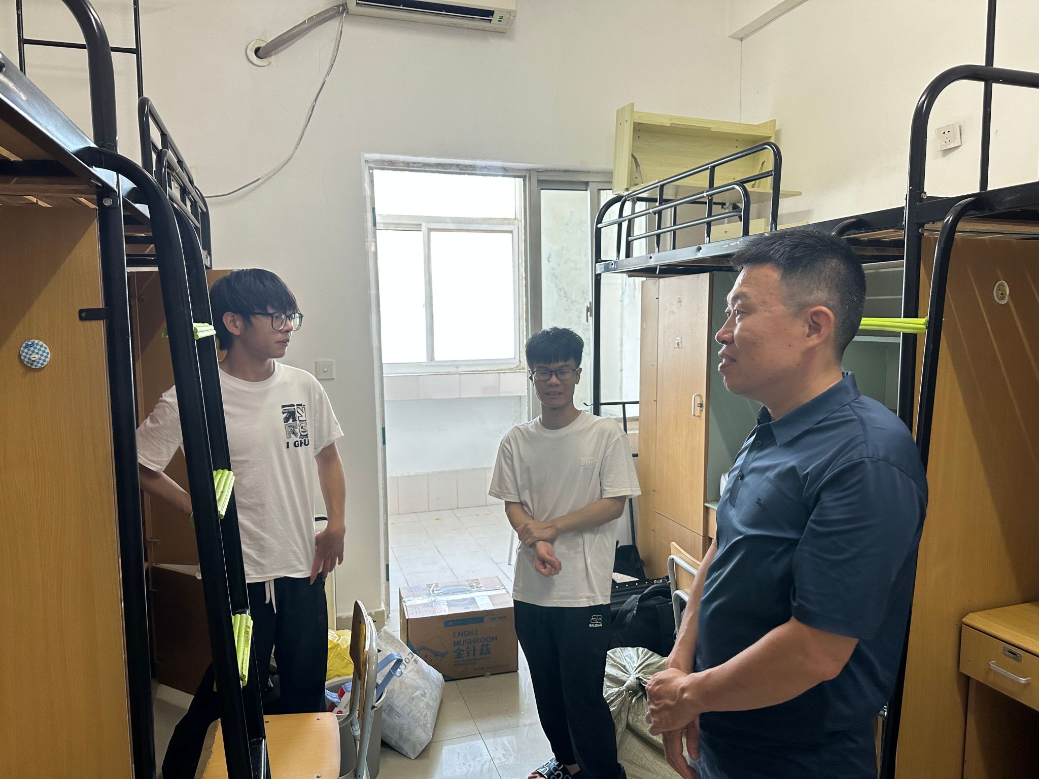 为深入了解学院2024级新生住宿情况和思想动态,帮助新生更好适应大学生活环境,近日,我院组织开展走访新生宿舍活动。学院班子成员与2024级新生辅导员深入学生宿舍,与新生面对面交流,传递学院关怀,了解新生需求。