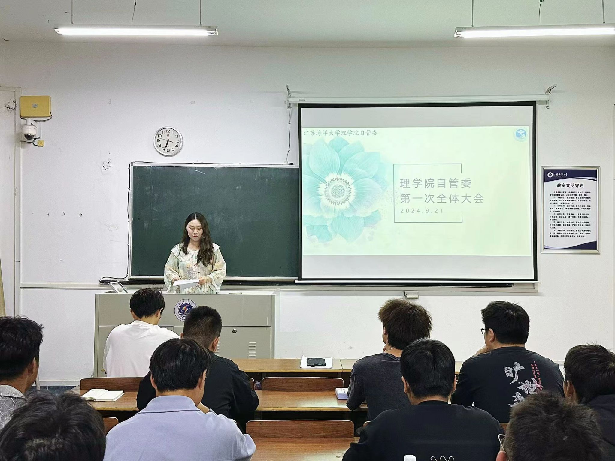 为做好新学年自管委整体工作部署,帮助新一届成员尽快适应岗位,9月21日下午,理学院自管委第一次全体大会在明德楼322教室举行。辅导员张慧婧和自管委全体成员参加会议,自管委主任许万程、孙雪主持会议。