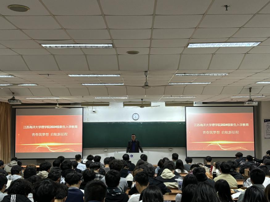 10月30日晚,理学院在通灌校区T至善102、202教室开展主题为“青春筑梦想,启航新征程”的新生入学教育讲座,旨在帮助2024级新生了解学校学籍管理相关规定,,更好地适应大学生活,规划学业路径,为他们的大学生涯奠定坚实基础。此次活动由学院党委副书记倪军主讲,2024级新生辅导员陈达主持,2024级全体同学参加。