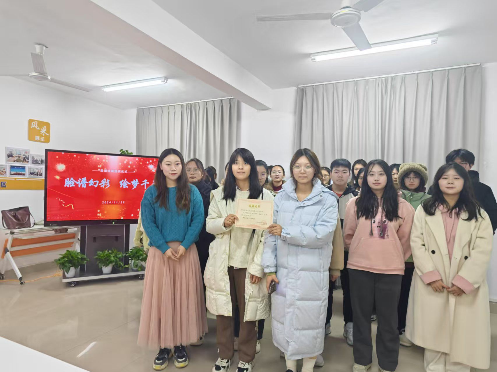 11月29日,由理学院学生会、自管委联合举办的“脸谱幻彩,绘梦千年”主题工艺活动圆满结束,并在一站式社区举办颁奖仪式。这次活动吸引了学校各个学院的学生,他们以宿舍为小组单位在这里展示技巧、交流经验,共同感受脸谱绘画艺术的魅力。