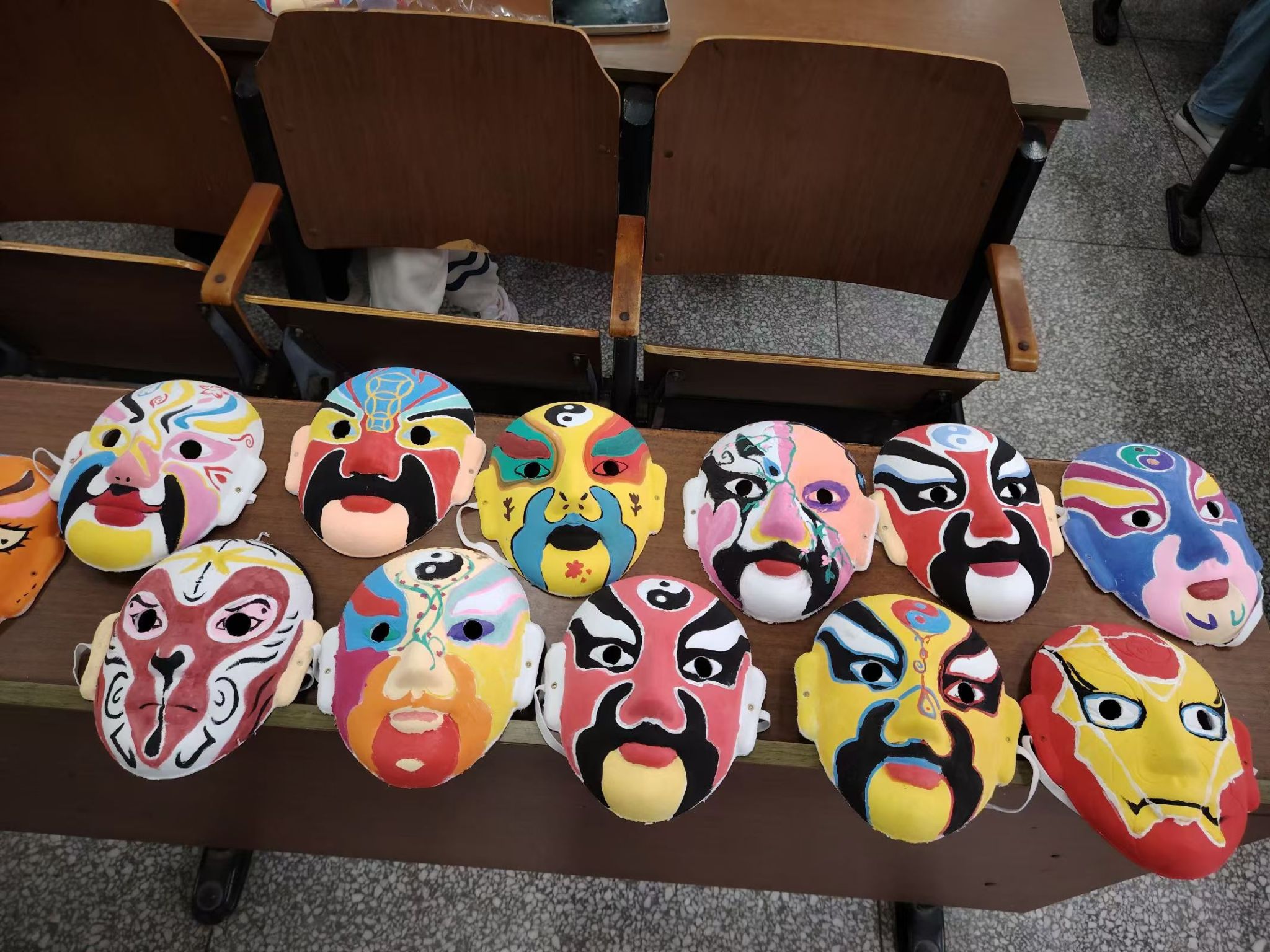 活动现场,同学们热情高涨,争相在面具上展示自己的脸谱绘画技巧。这些脸谱绘画不仅色彩斑斓,更融入了各种传统文化元素,如京剧、民间传说等,让人们在欣赏画作的同时,也能感受到传统文化的独特魅力。