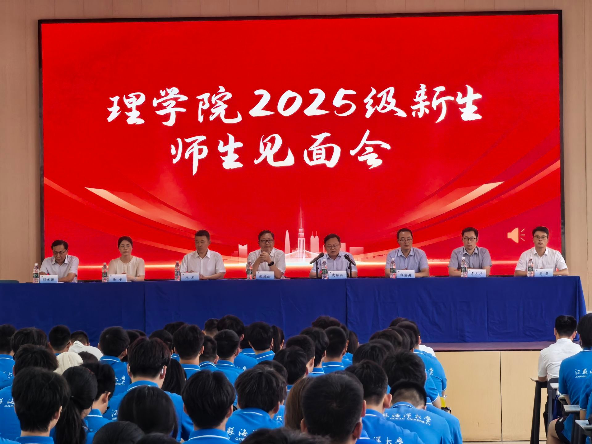 2025年9月6日下午,理学院在通灌校区前程餐厅召开2025级新生师生见面会。理学院党委书记张振松,院长史林兴,党委副书记倪军,各系(部)主任、全体新生班主任、实习班主任、辅导员及全体新生参加此次会议。