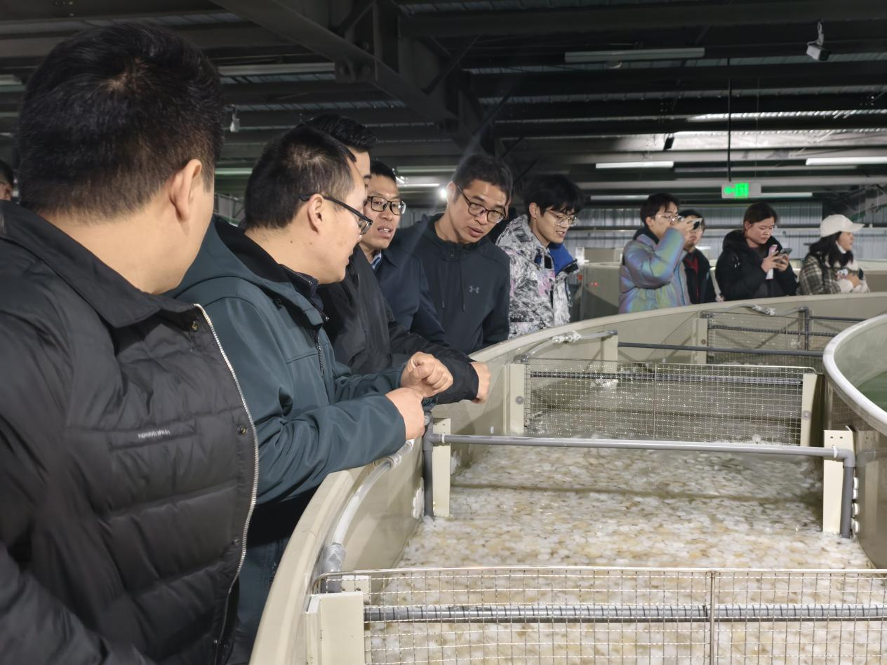 本次交流活动重点围绕三大环节展开:师生首站走进中国赣榆紫菜交易中心,听取相关负责人介绍赣榆紫菜产业的发展现状与交易中心的运行机制;随后前往赣榆区设施渔业集中区展厅,深入了解现代科技在近海渔业养殖中的实际应用,并走进养殖示范车间和循环水设备车间,实地观摩智能化养殖体系及尾水处理全流程;最后一站抵达苏鲁水产品交易市场,相关负责人从区位优势、市场规模、产业孵化机制等角度全面介绍了市场现状,并引导参观了正在建设中的新市场园区。