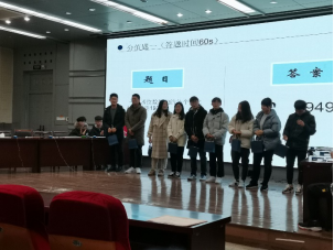 在这个比赛之前,选手们都是经过重重选拔出来的有实力的“顶尖高手”。未能进决赛的以及对数学有浓厚兴趣的同学都纷纷来观赛,赛场上选手之间的斗争十分激烈,为我们展示了一场脑力的较量。比赛时的互动环节,答对题目的观众也是获得理学会准备的礼物。比赛结束后,由我们秘书组的同学们为选手和观众签到。最后,很荣幸辅导员和学生会主席给我们做出了点评。