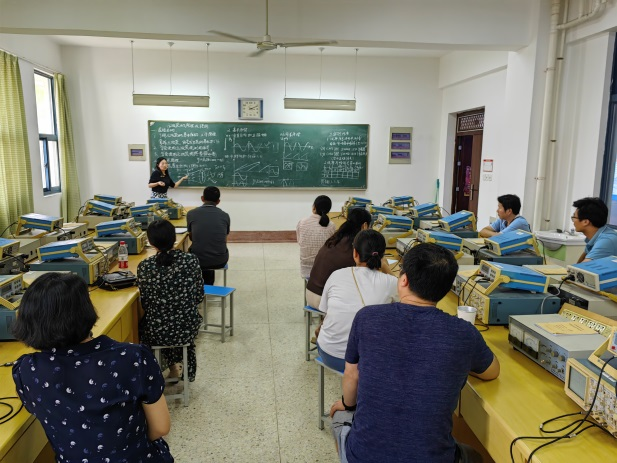 2023年9月8日下午,理学院实验中心举行了期初“大学物理实验”公开课教研活动,近两年新入职实验指导教师、学院教学督导专家和全体实验技术人员参加了活动。“大学物理实验”属于公共基础实验课,每年全校有73个班级、2900名学生要完成课程教学任务。“大学物理实验”是理工科学生必修的第一门公共基础实验课,在传授基本知识和实验方法、培养学生的实验能力和创新意识方面具有不可替代的重要作用。实验课不同于理论课教学,对指导老师能力具有更高、更全面的要求,不但要讲授理论知识,还要搭建实验系统,教会学生使用仪器、调试与测量,让学生掌握数据处理和分析问题、撰写报告的能力,甚至要具备处理各种故障和处理实验突发情况的能力。因此,如何让新教师快速具备实验指导能力,让老教师增加实验教学经验、完善知识结构,都是值得长期研究和探讨的,定期不定期地举办试讲、公开课、示范课、教学竞赛、技能比武等教研活动,都是有益且必要的举措。