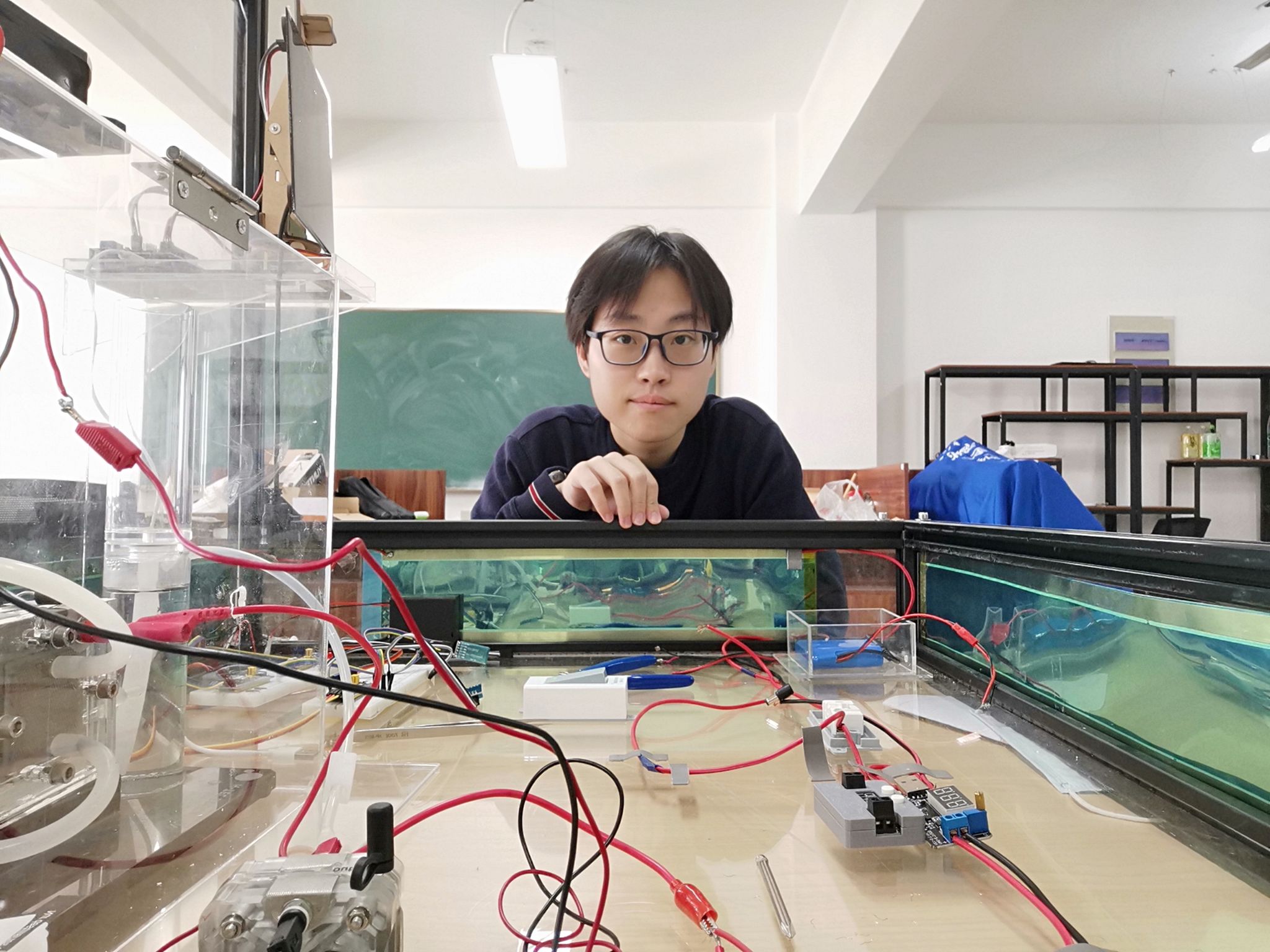 同时,林夕也开始着手他自己的项目,在黄增光老师的指导下,他开始构思自己的项目——光伏热电氢综合系统。他投入自己的其他课余时间,用于完成这个构想,每天晚上逗留在实验室里,思考、查阅资料、进行改装,最后成功实现了从零到一的转变,完成了这个演示系统,也在后面也申请到了国家级大创项目。